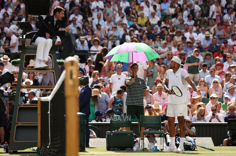 Nick Kyrgios khởi đầu trận đấu với chiến thắng 6-4 trong set 1, thế nhưng sớm có những bất đồng với khu vực ban huấn luyện và người thân. Tay vợt người Úc liên tục buông những lời lẽ sau mỗi tình huống bóng, bất luận được hay mất điểm.