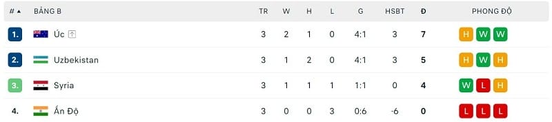 Bảng B: Australia, Uzbekistan