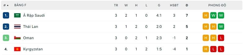 Bảng F: Saudi Arabia, Thái Lan