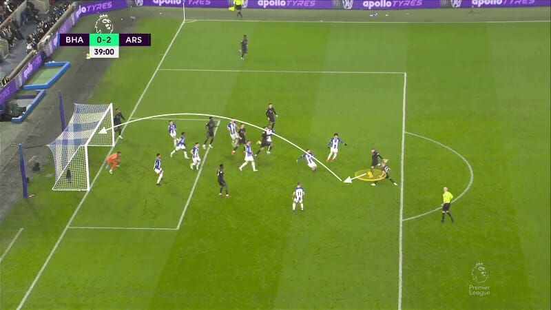 Không chỉ bóng một mà các cầu thủ đón lõng bên ngoài của Arsenal cũng khai thác tốt các pha bóng hai. Trước Brighton & Hove Albion, thủ quân Odegaard lao vào vô-lê từ quả phá bóng của đối phương, nâng tỷ số lên thành 2-0.