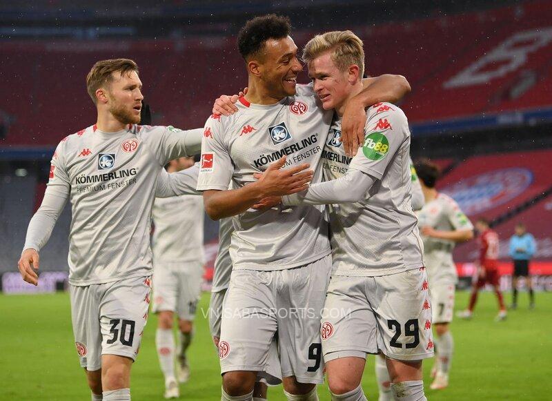 Dù để Bayern ép sân nhưng Mainz thi đấu cực kỳ tỉnh táo. Hàng thủ đội bóng này chơi tập trung để hạn chế tối đa sự nguy hiểm từ đối phương. Sau một vài thời cơ hiếm hoi bị bỏ lỡ, Bayern đã phải trả giá. Burkardt xử lý khéo léo để vượt qua sự truy cản của Hernandez trước khi chuyền vào cho Onisiwo dứt điểm chính xác để mở tỷ số. Một bàn thắng khiến khán đài Allianz Arena phải câm lặng.