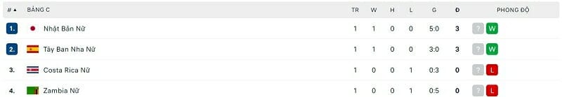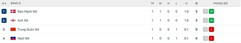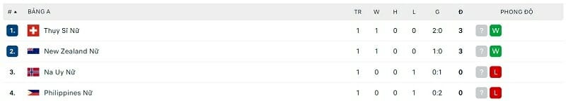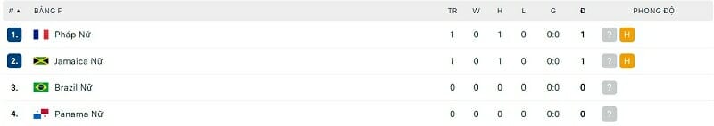 SABAVN cung cấp bảng xếp hạng World Cup bóng đá nữ hôm nay ngày 24/07. Bất ngờ đã xảy ra ở bảng F khi ứng viên vô địch là Pháp chỉ có được kết quả hòa trước Jamaica.