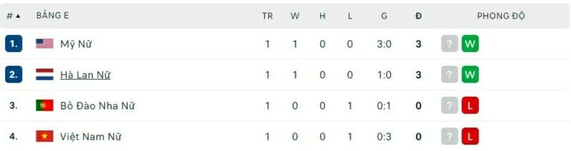 SABAVN cung cấp bảng xếp hạng World Cup bóng đá nữ hôm nay ngày 27/07. Tại bảng E sẽ diễn ra cả 2 trận của lượt thi đấu 2 và những tấm vé đi tiếp đầu tiên có thể sẽ lộ diện ngay trong hôm nay.