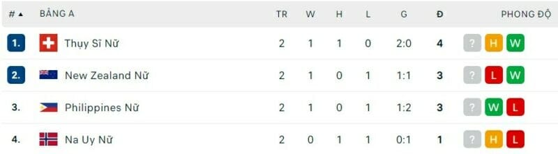 Còn ĐT nữ Philippines thì đang cầm quyền tự quyết trong tay. Nếu thua trận cuối, họ cũng chưa chắc đã bị loại. Còn nếu thắng, các cô gái Philippines sẽ đi tiếp. Trường hợp ĐT nữ Na Uy thắng trận cuối, họ sẽ phải trông chờ vào kết quả của trận đấu giữa nữ Thụy Sĩ vs nữ New Zealand để biết mình có thể đi tiếp hay xách vali về nước.