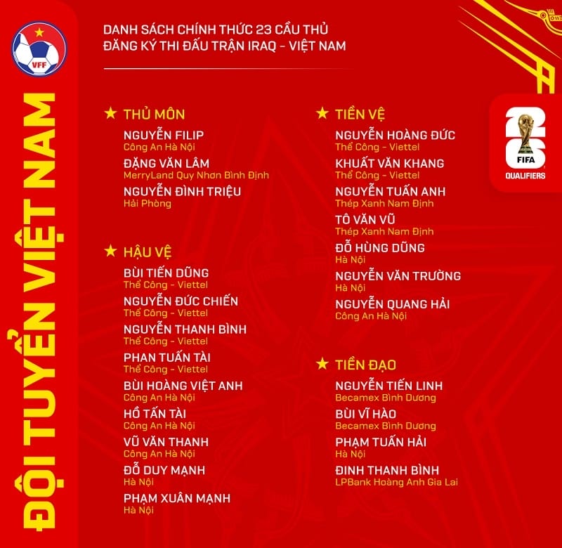 Danh sách ĐT Việt Nam ở trận gặp Iraq