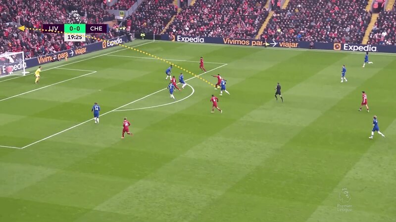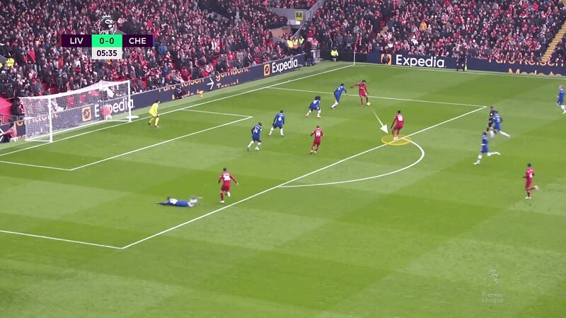 Cũng tại màn thư hùng với Chelsea, ngay đầu trận, Gakpo đón bóng từ đường nhả về của Mohamed Salah.