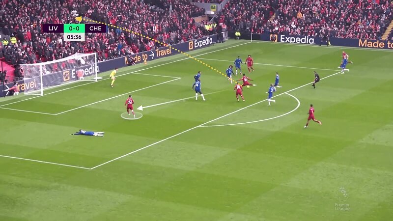 Một lần nữa, số 18 xử lý hơi vội. Pha dứt điểm của anh đi không trúng mục tiêu, trong lúc hậu vệ Andy Robertson hoàn toàn trống trải ở phía bên trái.