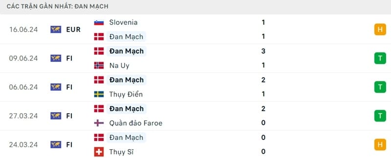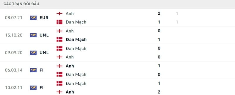 Về mặt phong độ, Đan Mạch thậm chí thể hiện tốt hơn Anh. Họ thắng 3 và hòa 2 trong 5 lần ra sân gần nhất. Song, đó chỉ là thông số tham khảo bởi các kết quả đá giao hữu không đủ để đưa ra kết luận Đan Mạch sẽ thi đấu tốt tại Euro 2024. Họ đang bị Anh át vía sau các lần đụng độ trong quá khứ. Sau 22 lần chạm trán, đại diện xứ sương mù thắng 13, thua 4 và hòa 5. Cuộc đối đầu gần nhất giữa 2 đội diễn ra tại bán kết Euro 2020. Harry Kane và đồng đội thắng 2-1 sau 120 phút.