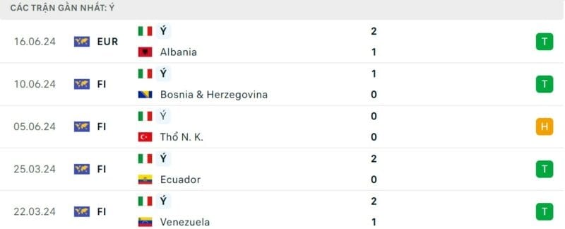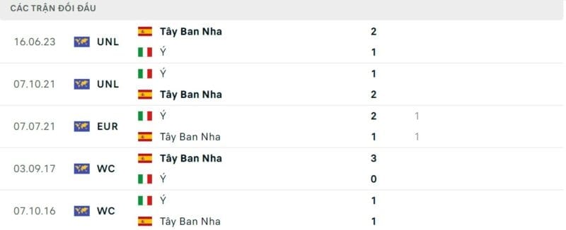 Thành tích đối đầu Tây Ban Nha vs Ý