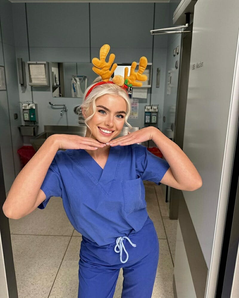 Tuy nhiên, Kim không chỉ tập trung vào diện mạo bề ngoài. Thực tế, bóng hồng người Đức luôn cố gắng giúp đỡ các bệnh nhân trong vai trò y tá. Từ bé, cô đã nuôi ước mơ được làm việc tại bệnh viện. Sau khi tốt nghiệp trung học, người đẹp này ngay lập tức tham gia chương trình huấn luyện để trở thành y tế.