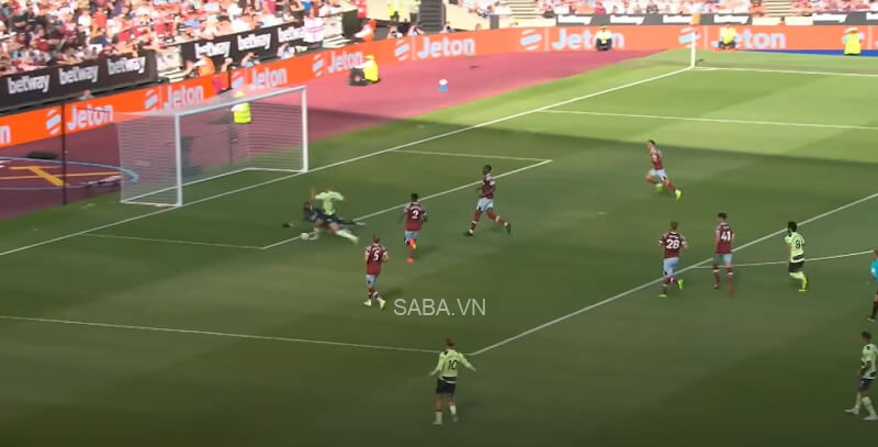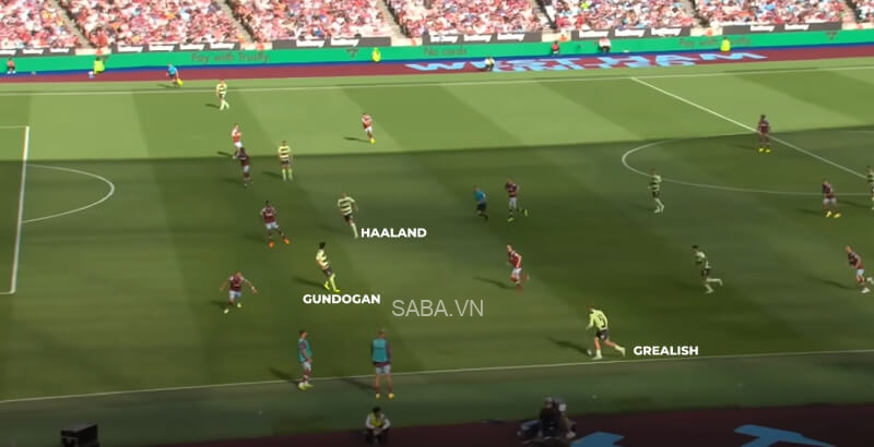 Khi Grealish có bóng, Gundogan đã nhìn sang phía Haaland để định hình tình huống. Ngôi sao 31 tuổi chỉ chờ đợi pha mớm bóng từ đàn em hòng khai thác khoảng trống khi các hậu vệ West Ham dâng lên.