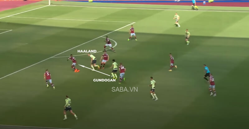 Những ưu điểm ấy càng được phát huy khi Gundogan chơi cùng Haaland. Với bộ đôi này, The Citizens có một phương án đánh thẳng vào trung lộ hoặc hành lang trong của đối thủ. Chẳng hạn như trong ngày mở màn, số 8 và số 9 cùng xuất hiện tại rìa vòng cấm West Ham United và gây ra khó khăn ngay phút thứ 27.