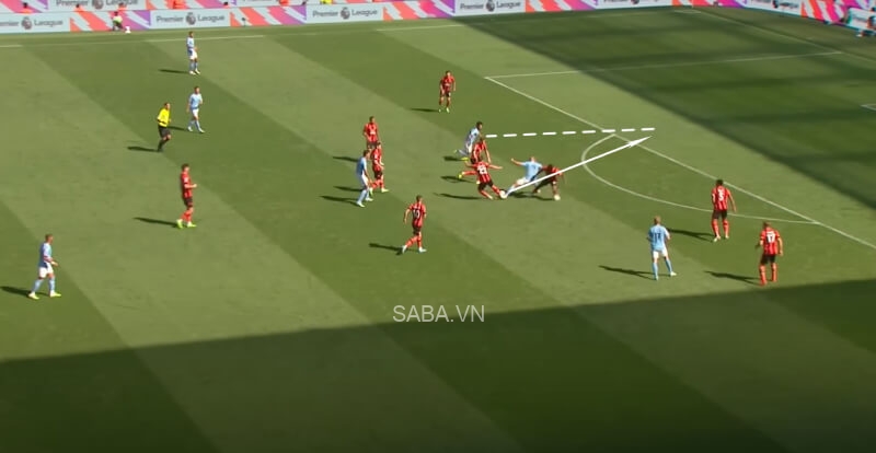 Số 9 chật vật trước sự áp sát của hai cầu thủ áo đỏ đen, nhưng cuối cùng vẫn hất được quả bóng tới trước. Cơ hội dành cho Bournemouth là không nhiều, bởi Gundogan hiếm khi bỏ lỡ những món hời như thế này.