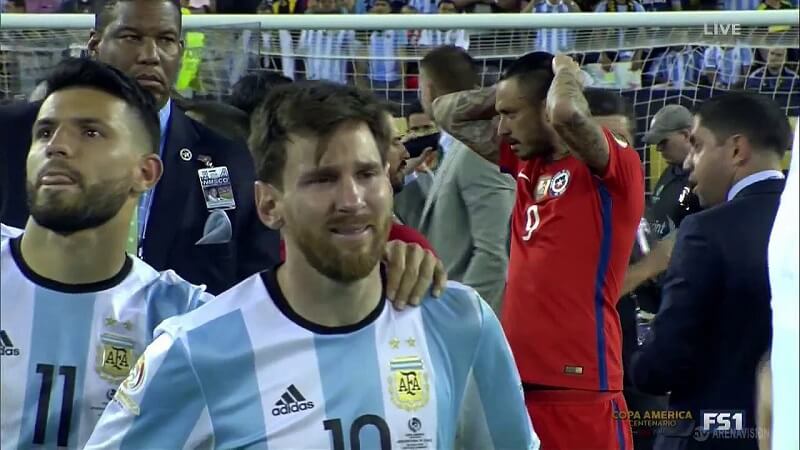 Một năm sau, cơn ác mộng lặp lại. Vẫn là Chile tại chung kết, vẫn là loạt penalty định mệnh và phần thua vẫn dành cho Messi cùng người Argentina. Chính chàng thủ quân còn trực tiếp đá hỏng quả 11 mét đầu tiên. Những giọt nước mắt đã rơi trên gương mặt cầu thủ được nhiều khán giả xem là xuất sắc nhất lịch sử. Thậm chí, M10 còn tuyên bố chấm dứt sự nghiệp thi đấu quốc tế vì không chịu đựng nổi những thất bại triền miên. Rất may là sau đó anh đã quyết định tái xuất.