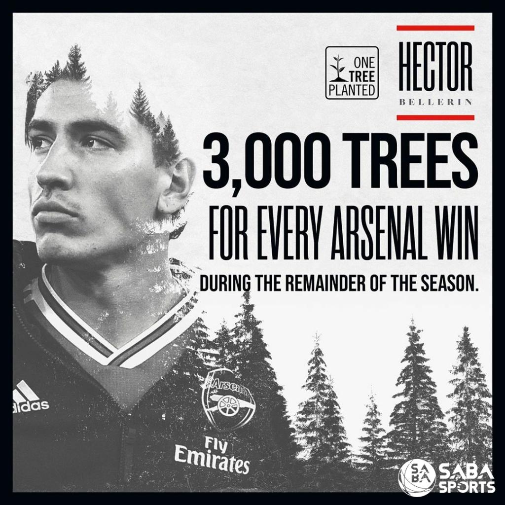 Cụ thể, Hector cam kết trồng 3000 cây xanh với mỗi chiến thắng của Arsenal tính từ đây đến cuối mùa giải.