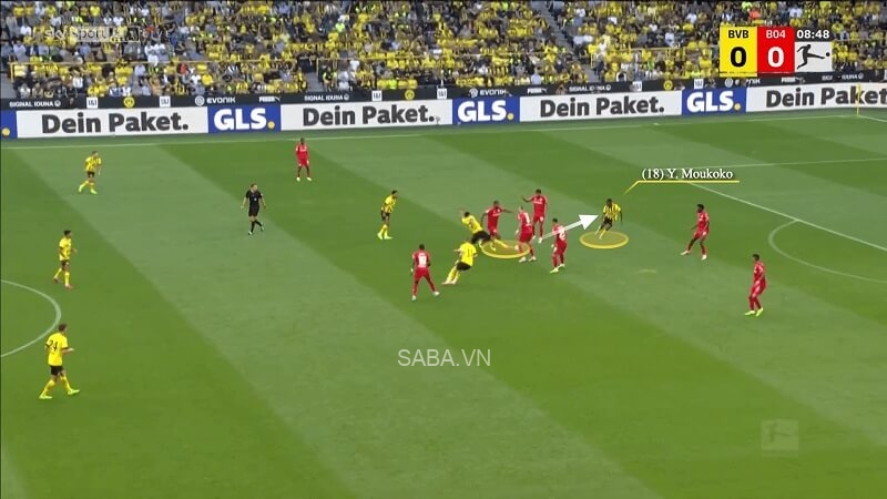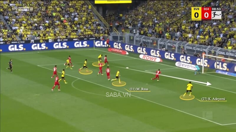 Số 27 tung ra pha dứt điểm, và dù cú sút đó không trực tiếp thành bàn, nó vẫn dẫn đến bàn thắng cho Marco Reus.