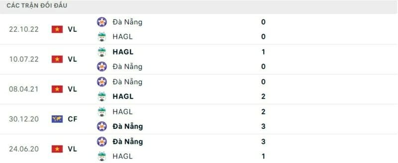 Thành tích đối đầu SHB Đà Nẵng vs HAGL: