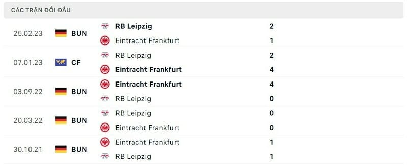 Thành tích đối đầu Leipzig vs Frankfurt: