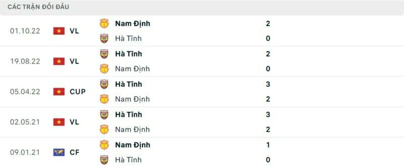 Thành tích đối đầu Nam Định vs Hà Tĩnh: