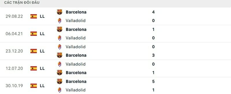 Thành tích đối đầu Real Valladolid vs Barcelona: