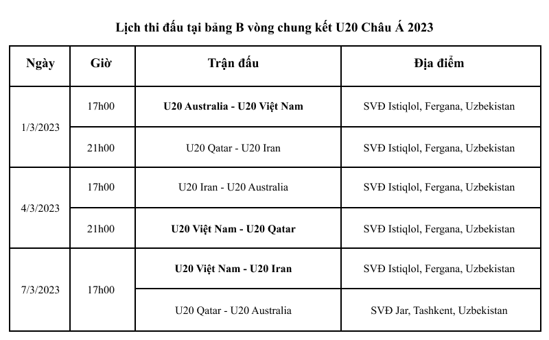Đối thủ của U20 Việt Nam ở bảng B giải U20 châu Á năm nay là ba đội U20 Australia, U20 Qatar và U20 Iran.