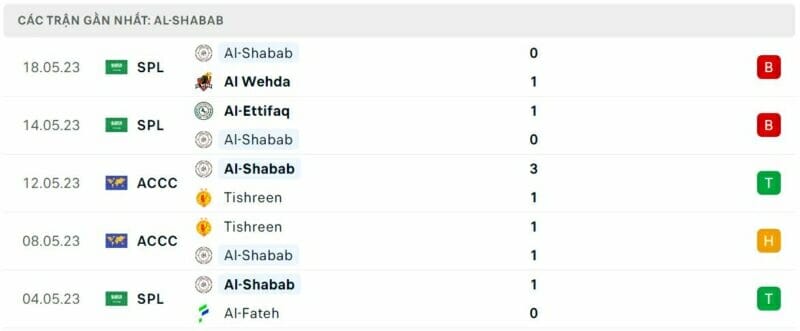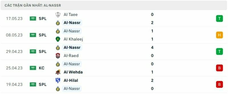 Thành tích đối đầu Al Nassr vs Al Shabab