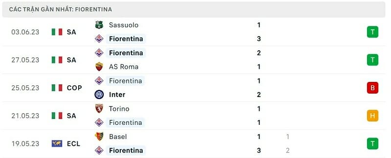 Dù bị đoàn quân của HLV Jose Mourinho chọc thủng lưới ngay ở phút 11 nhưng Fiorentina không hề bỏ cuộc và có được 2 bàn thắng trong những phút cuối cùng của trận đấu. Đoàn quân của HLV Vincenzo Italiano cũng đang có chuỗi phong độ tương đối ổn thời gian gần đây. Tính trong 5 trận gần nhất, Fiorentina chỉ nhận duy nhất 1 thất bại, 1 trận hòa và có 3 chiến thắng.