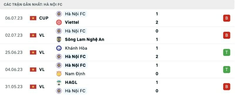 Thành tích đối đầu Hà Nội vs Bình Định: