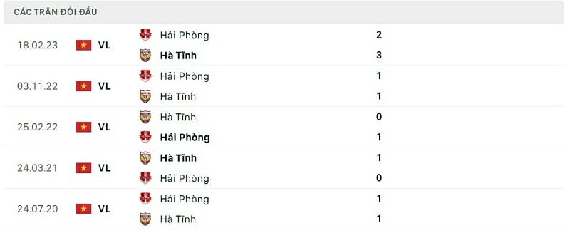Thành tích đối đầu Hà Tĩnh vs Hải Phòng: