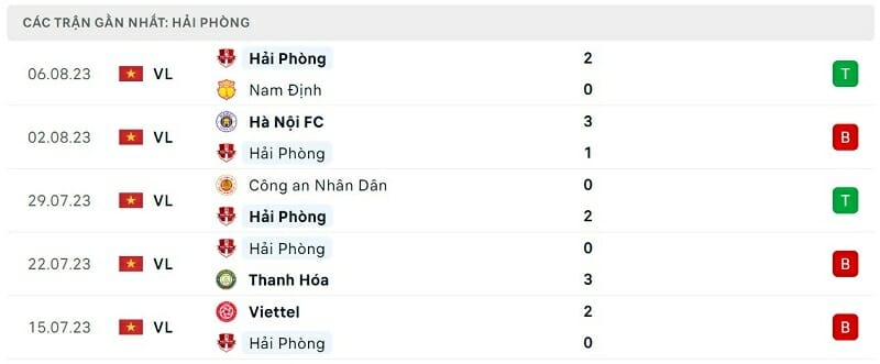 Phong độ Hà Tĩnh vs Hải Phòng: