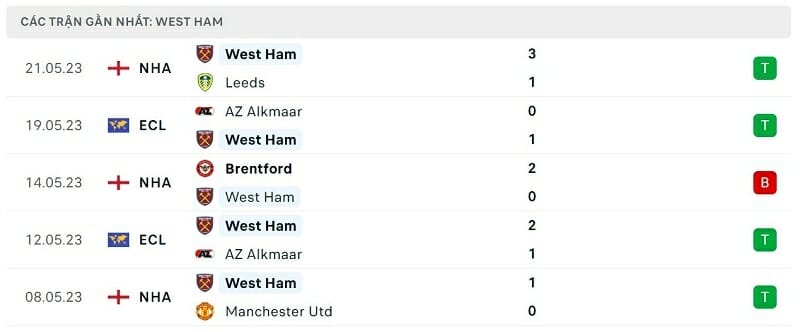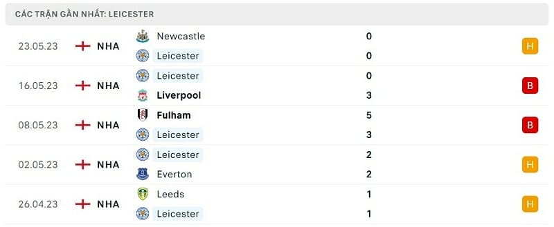 Phong độ Leicester vs West Ham: