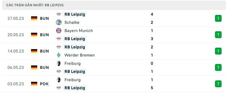 Ở trận đấu gần nhất gặp Schalke 04 tại vòng cuối cùng của Bundesliga mùa này, Leipzig đã có chiến thắng tưng bừng với tỷ số 4-2 và kết thúc mùa 2022/23 ở vị trí thứ 3 chung cuộc. Dù không thể tham gia cuộc đua cạnh tranh chức vô địch Bundesliga cùng Bayern Munich và Dortmund nhưng đây vẫn là mùa giải thành công đối với thầy trò Marco Rose khi họ chỉ kém 5 điểm so với hai đội bóng trên.
