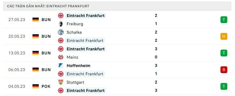 Phía bên kia chiến tuyến, Frankfurt cũng có màn chạy đà không hề tồi cho trận chung kết khi đánh bại Freiburg với tỷ số 2-1. Tuy nhiên không như Leipzig, phong độ thời gian gần đây của Die Adler không thật sự ổn định. Đoàn quân của HLV Oliver Glasner thắng 4 trận, hòa 3 trận và phải nhận 3 thất bại trong 10 trận đấu gần nhất.