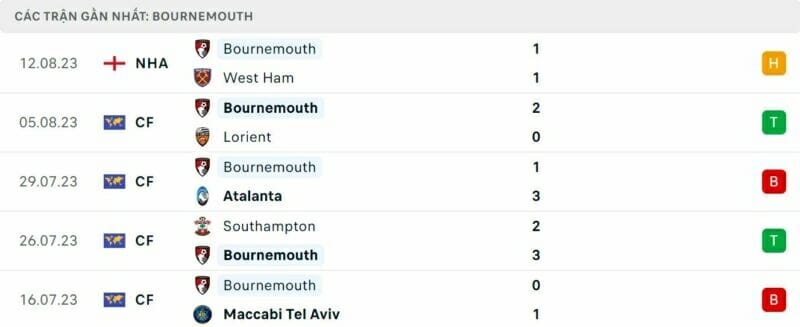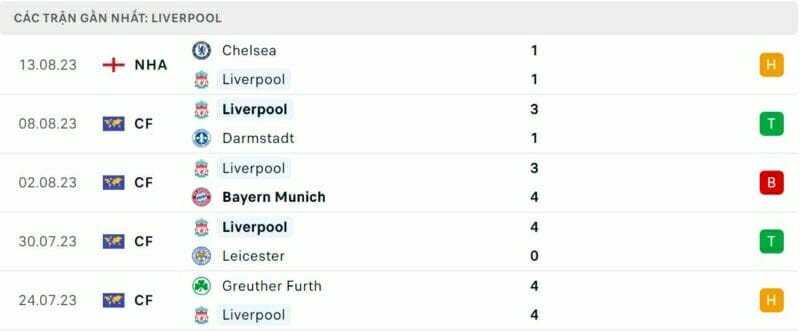 Phong độ Liverpool vs Bournemouth:
