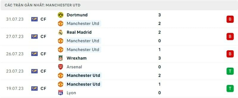 Để chuẩn bị cho chiến dịch mùa tới, Man Utd rất tích cực thi đấu giao hữu. Tuy vậy, những màn trình diễn mà họ để lại không được đánh giá cao. Sau 3 trận thắng trước Leeds United, Lyon và Arsenal, họ đã nhận liền 2 thất bại trước Real Madrid và Borussia Dortmund (không tính trận thua Wrexham do sử dụng đội hình phụ). Đặc biệt, 2 trận này thì tính kết nối giữa các cầu thủ không cao và HLV Ten Hag đã bày tỏ thái độ vô cùng không hài lòng. Hiện Man Utd còn 2 trận giao hữu nữa gặp Lens và Athletic Bilbao trước khi chính thức bước vào mùa tới.