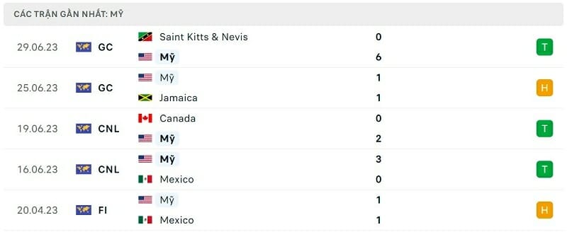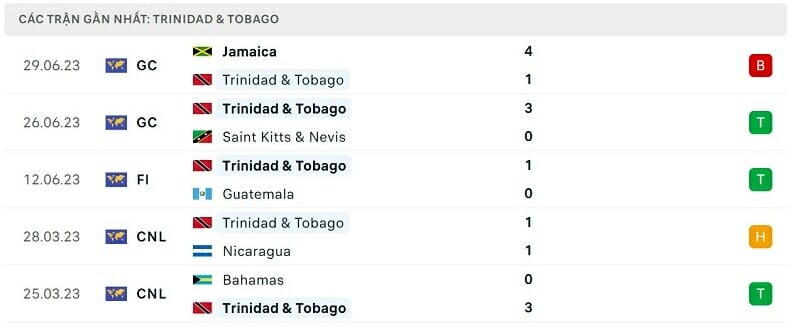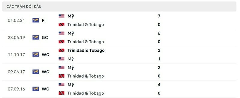 Thành tích đối đầu Mỹ vs Trinidad & Tobago: