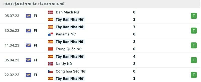 Thành tích đối đầu nữ Việt Nam vs nữ Tây Ban Nha: