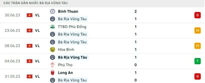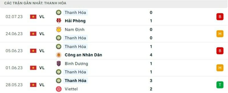 Phong độ gần đây Thanh Hóa vs Bà Rịa Vũng Tàu:
