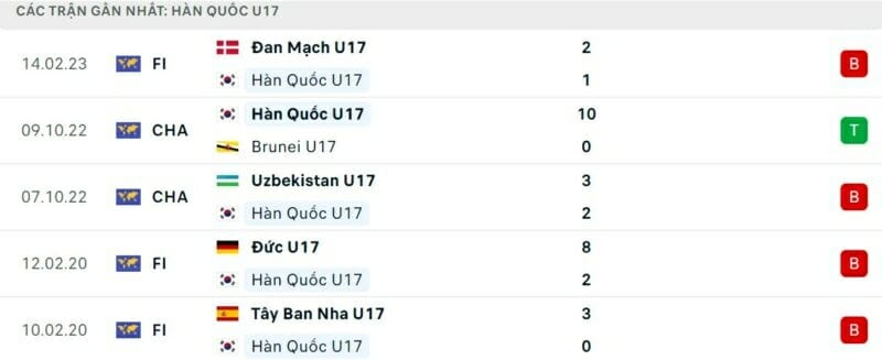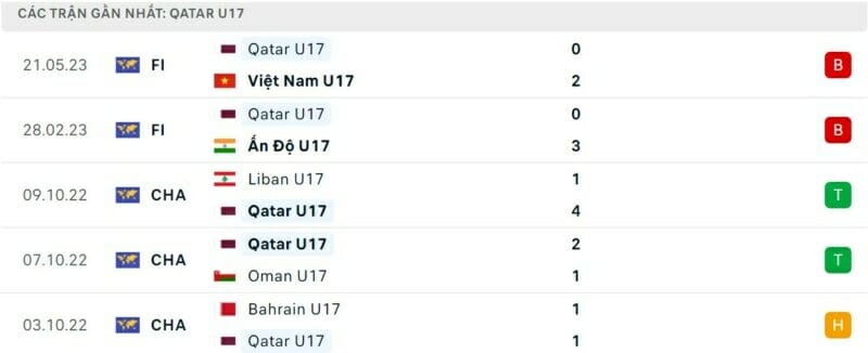 Phong độ gần đây U17 Hàn Quốc vs U17 Qatar: