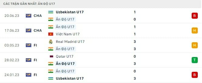 Phong độ U17 Nhật Bản vs U17 Ấn Độ