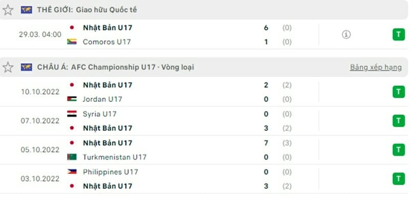 Phong độ gần đây U17 Nhật Bản vs U17 Uzbekistan: