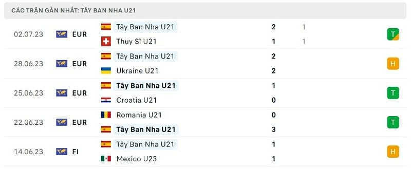 Phong độ U21 Tây Ban Nha vs U21 Ukraine: