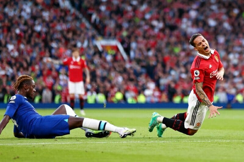 Antony tỏ ra vô cùng đau đớn sau pha tranh chấp với Chalobah.