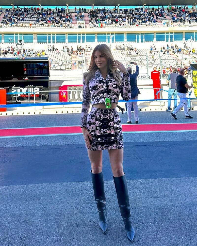 Ngoài tình yêu dành cho bóng đá, Eva cũng rất ưa thích bộ môn đua xe. Mới đây, cô đã đến theo dõi sự kiện MotoGP tại Bồ Đào Nha. Người đẹp 30 tuổi tranh thủ tạo dáng trên đường đua khi diện váy ngắn và boot cao vô cùng sành điệu.