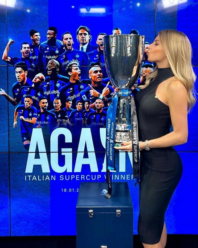 Bóng đá Ý bấy lâu nay tự hào khi có bóng hồng Diletta Leotta, giờ lại giới thiệu thêm một nữ thần sexy khác. Cô nàng Eva Gini năm nay 30 tuổi, đang đảm nhận vai trò phóng viên cho bộ phận truyền thông CLB Inter Milan. Trước đó, mỹ nhân tóc vàng từng cộng tác cùng những đơn vị như Gazzetta dello Sport hay Mediaset.