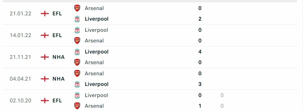 Có thể nói Liverpool là đối thủ kỵ rơ của Arsenal khi Pháo Thủ mới chỉ thắng 1 trong 18 lần đối đầu gần đây nhất (hòa 8, thua 9 các trận còn lại). Trong mùa này, 2 đội gặp nhau 3 lần (2 ở Carabao), Liverpool thắng 2, hòa 1.
