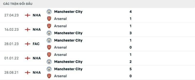 Xét thành tích đối đầu, Man City hoàn toàn vượt trội trước trận Siêu cúp này. The Citizens liên tục đả bại Pháo thủ ở những năm qua. Tính riêng trong 5 trận gần nhất, thầy trò Pep Guardiola toàn thắng, với những lần ghi được 1,2,3,4 rồi 5 bàn vào lưới đối thủ.