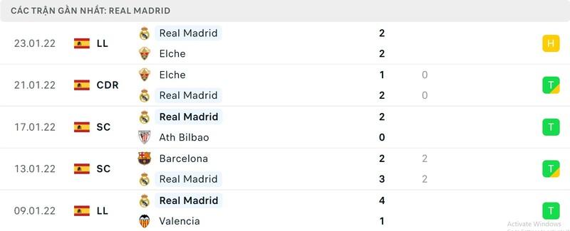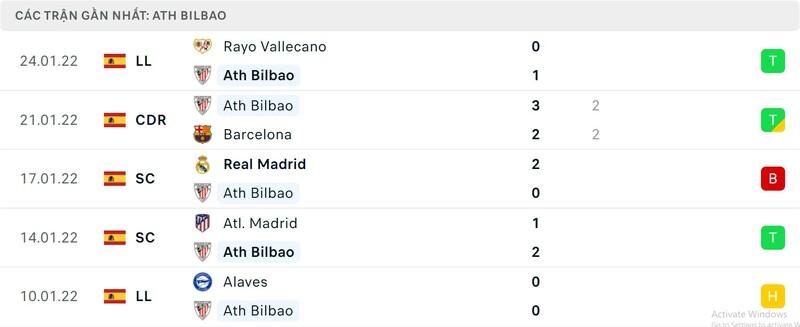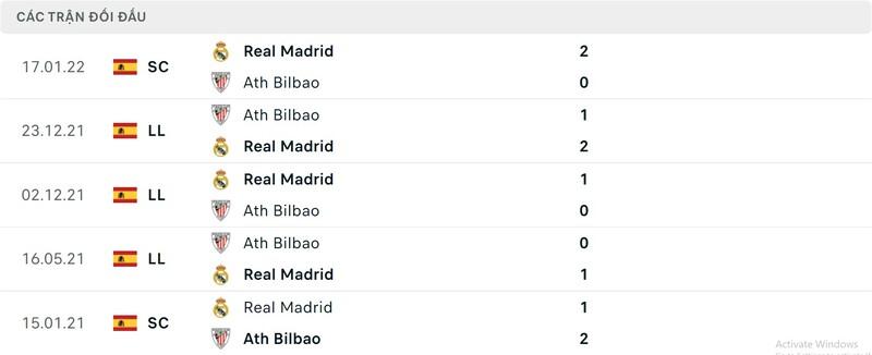 Thành tích đối đầu Athletic Bilbao vs Real Madrid: