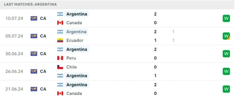 Ngoại trừ trận hòa với Ecuador tại tứ kết, Argentina đang có chuỗi toàn thắng từ tháng 11/2023 đến hiện tại. Thầy trò HLV Scaloni sở hữu phong độ ấn tượng của nhiều ngôi sao thay nhau tỏa sáng.
