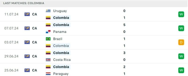Colombia đang có điểm rơi phong độ tốt tại Copa America 2024, khi thắng 4/5 trận đấu. Họ chỉ để hòa trận thủ tục với Brazil ở lượt cuối vòng bảng.